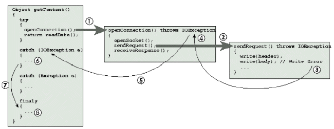 Figure 4 : schéma du flot de contrôle lié aux exceptions